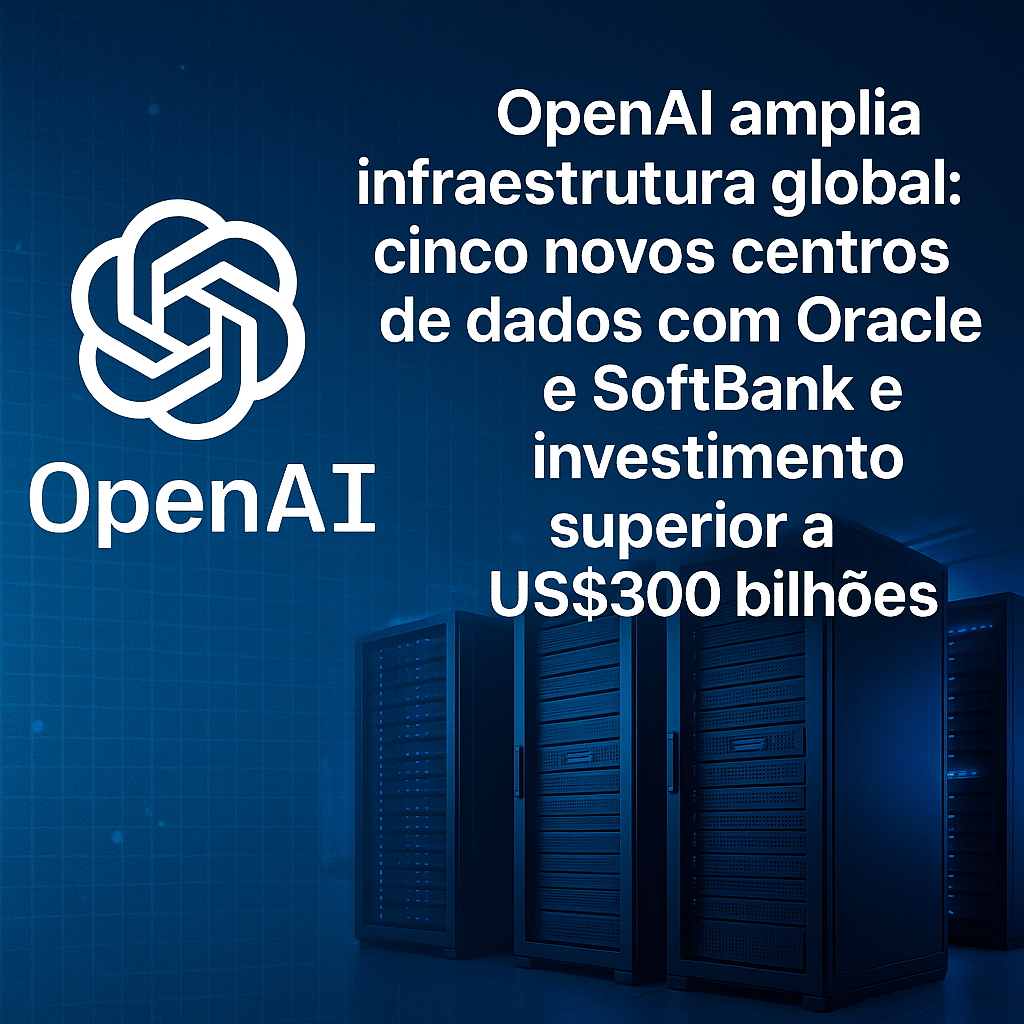 OpenAI amplia infraestrutura global: cinco novos centros de dados com Oracle e SoftBank e investimento superior a US$300 bilhões Lucas Lima 25 de September de 2025